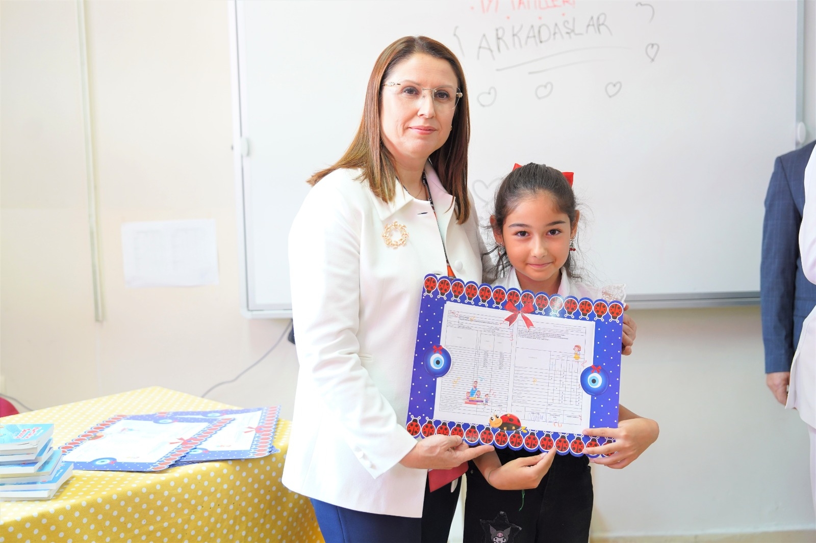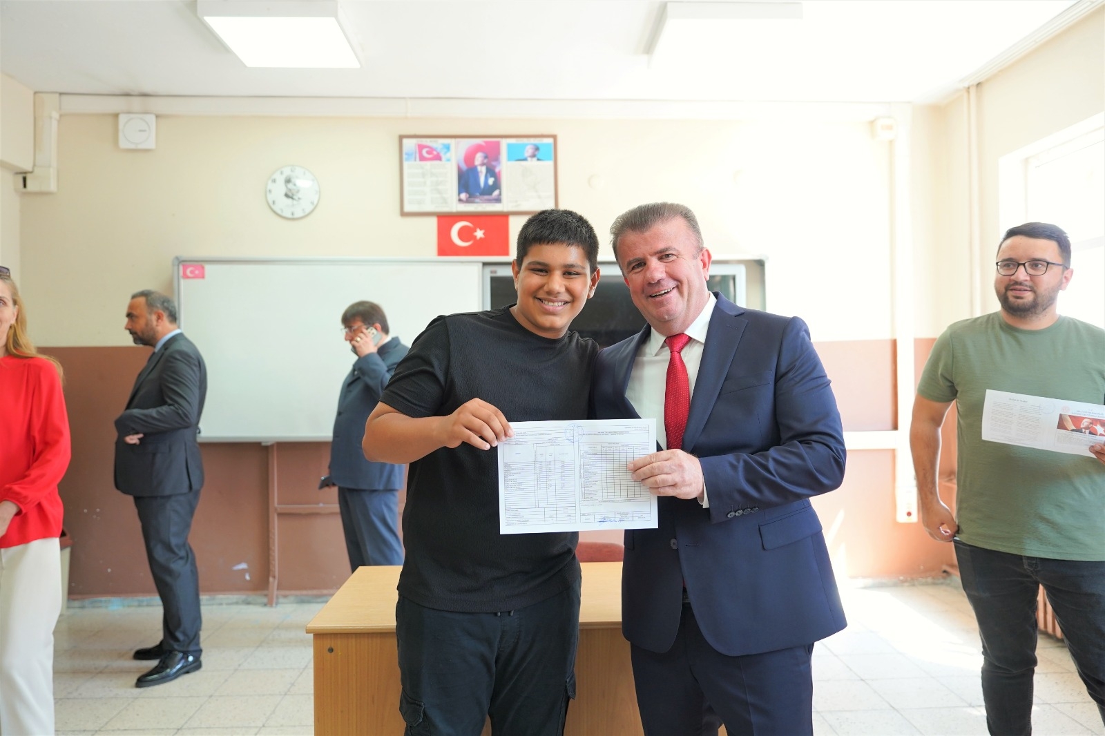 Yıl boyunca gösterdikleri gayret ve çalışmalardan dolayı emeklerinin karşılığını alan öğrencilerimiz bugün karnelerini Valimiz Sayın Dr. Nurtaç ARSLAN, İl Millî Eğitim Müdürümüz Ramazan AŞCI ve ilimiz protokolünün ellerinden aldılar.